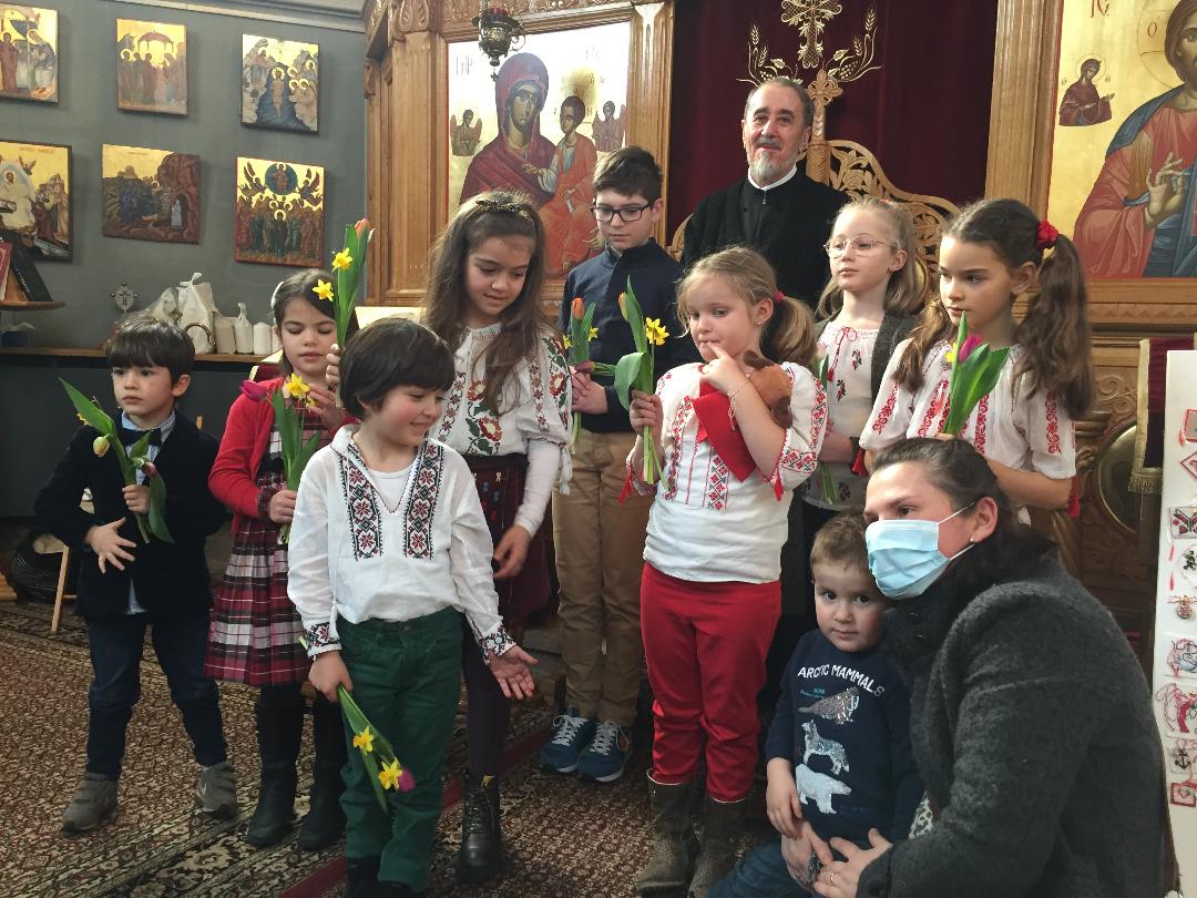 La această sărbătoare a Mărţişorului, au participat şi elevi ai şcolii parohiale, cu propriile desene şi mărţişoare, precum şi cu un moment de poezie şi muzică dedicat primăverii şi tradiţiei mărţişorului.