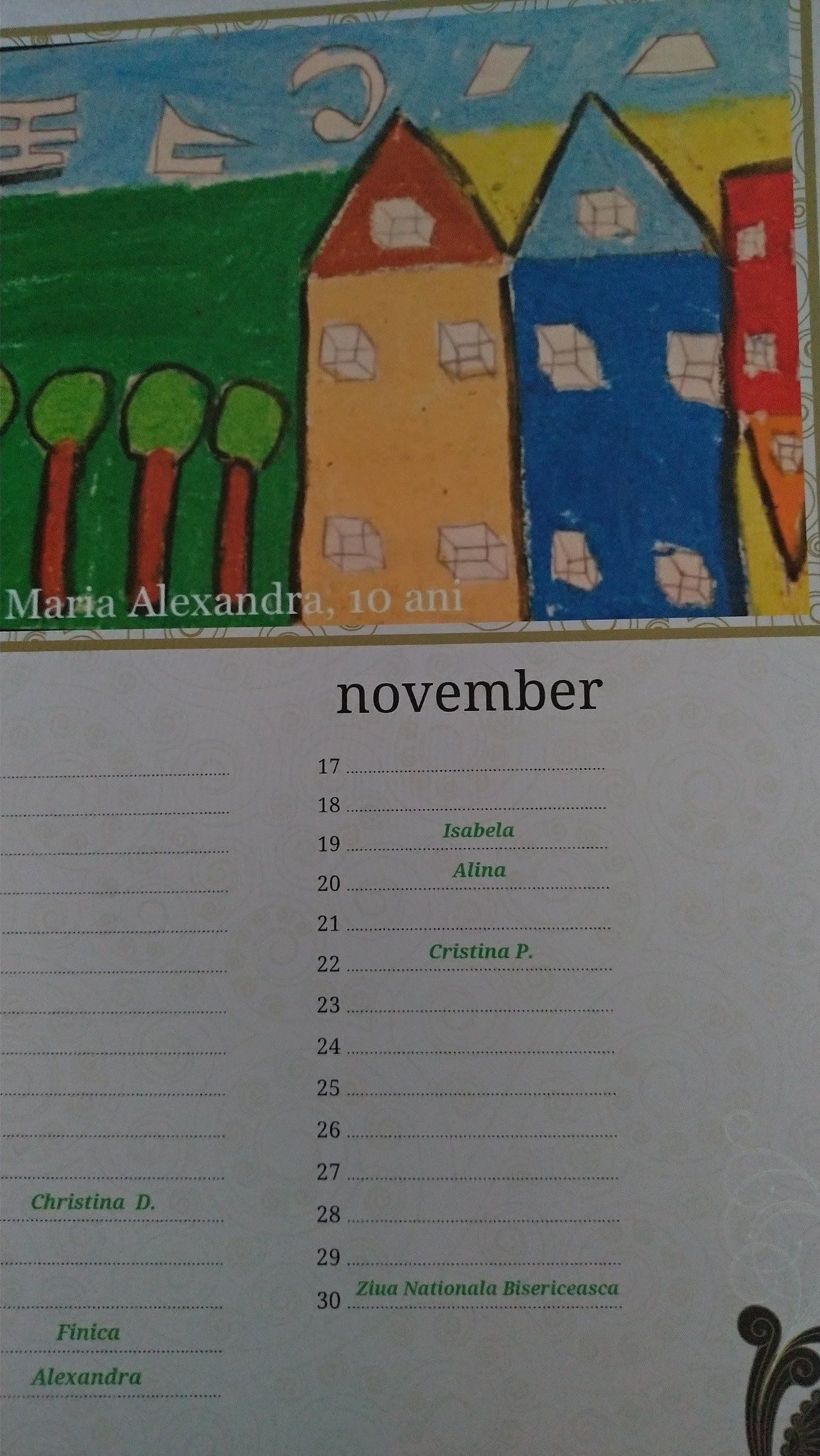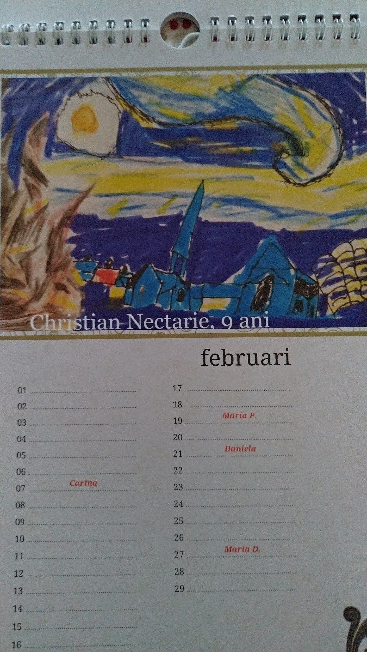 Calendarul a fost decorat cu desene ale copiilor parohiei noastre.