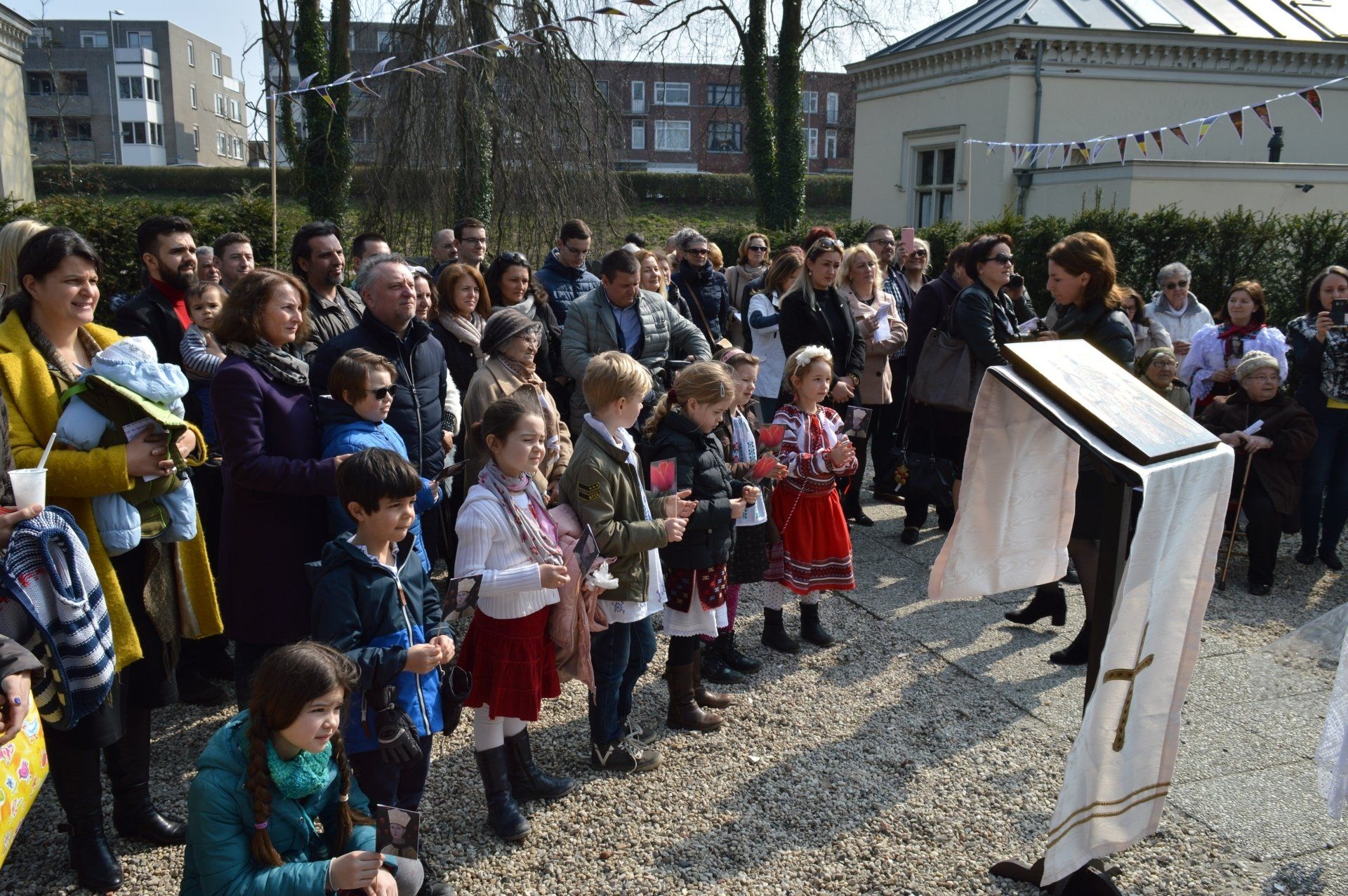 Ceremonia a început cu slujba religioasă de binecuvântare și "botezul" săvârșite de Preotul Paroh Dr. Ioan Dură, Protopopul Țărilor de Jos și al Belgiei Flamande și s-a încheiat cu "botezul" laic săvârșit de președinta asociației, doamna Ioana Mațenco.
