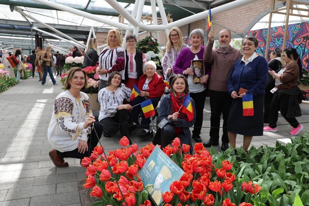 Bucuria „întâlnirii” cu superbele lalele a fost întregită prin alăturarea drapelului tricolor și a portretului soției domnitorului martir, compunând, astfel, un original tablou românesc în cea mai mare grădină florală olandeză.