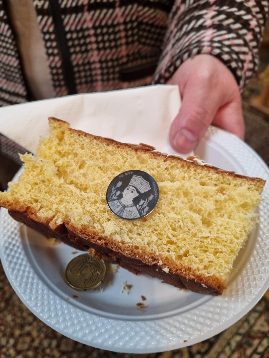 În Vasilopită a fost pusă o monedă cu chipul Doamnei Maria Brâncoveanu. Potrivit tradiției, moneda va aduce binecuvântarea Sfântului Vasile cel Mare celui care o va găsi în felia primită. În acest an, moneda a fost găsită de doamna Elena Geacarel.